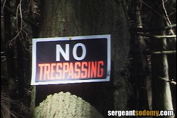 Raymond Ah Raymond. Can't you read the damn "NO TRESPASSING" sign?! You're sitting right under it! Oh well, guess you're going to have to pay a hefty fine then. What's that? You don't have any money? Hmmm, well then, I guess you'll just have to obey the Sergeant's orders and BEND OVER!