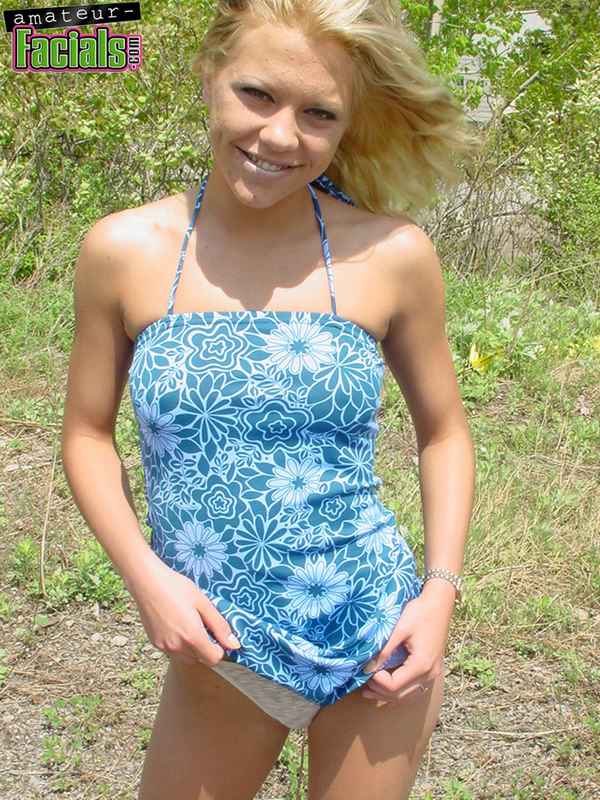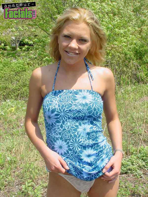 Blonde amateur Ashley gets a facial cumshot Outdoor blonde amateur lets a horny man cum on her face |